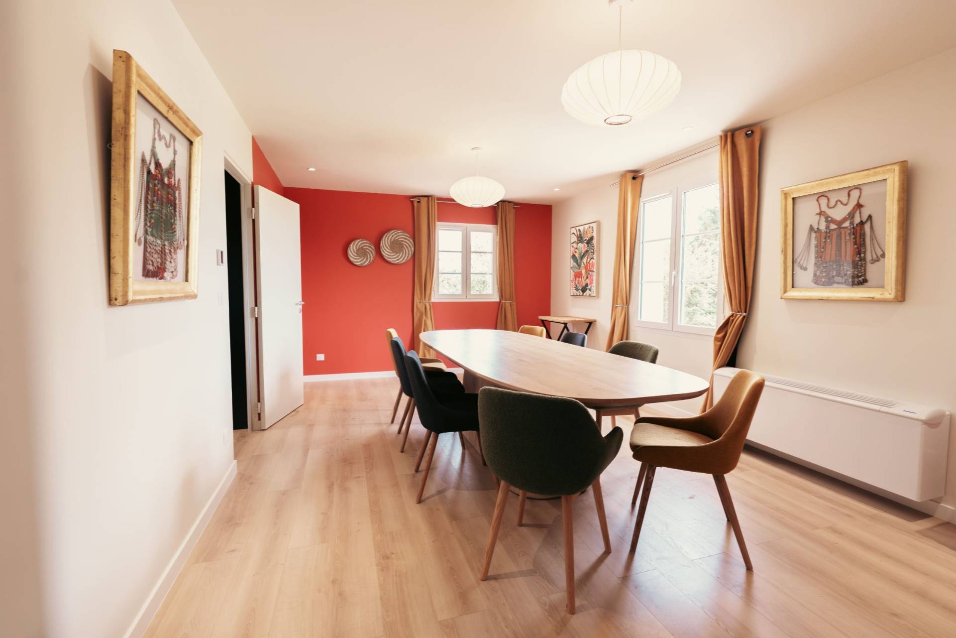 Idéale pour les petites réceptions, séminaires ou repas communs aux deux gîtes. Cette ancienne ferme typique du Lauragais, rénovée récemment avec des matériaux anciens et traditionnels, a gardé son cachet tout en privilégiant un confort optimal (wifi, climatisation, équipements…).