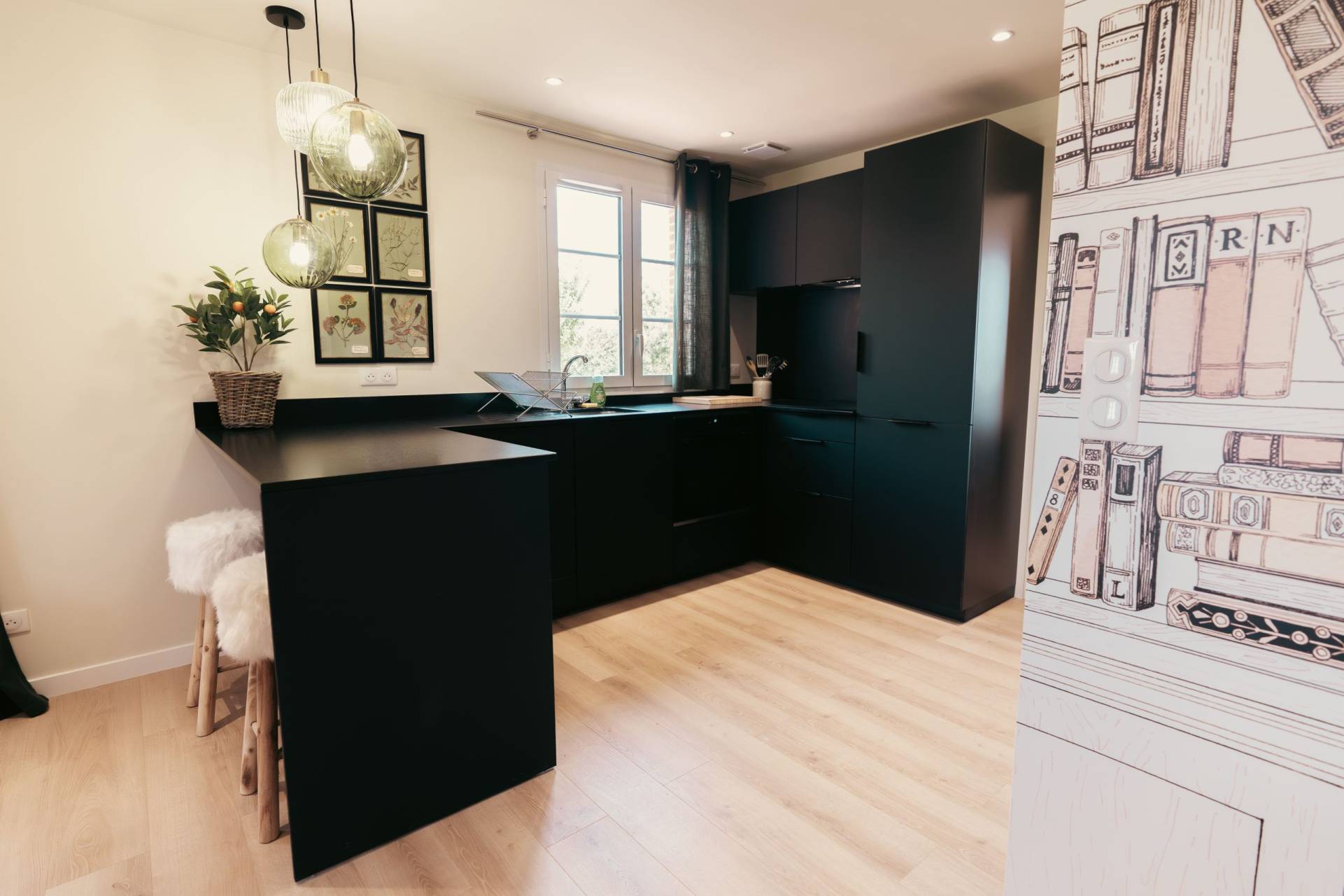 Elle s’ouvre vers l’extérieur côté nord vers un grand auvent pour votre cocktail.
